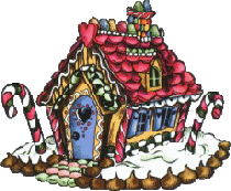 Sein Dach, das ist weiß, hat Zapfen aus Eis.
